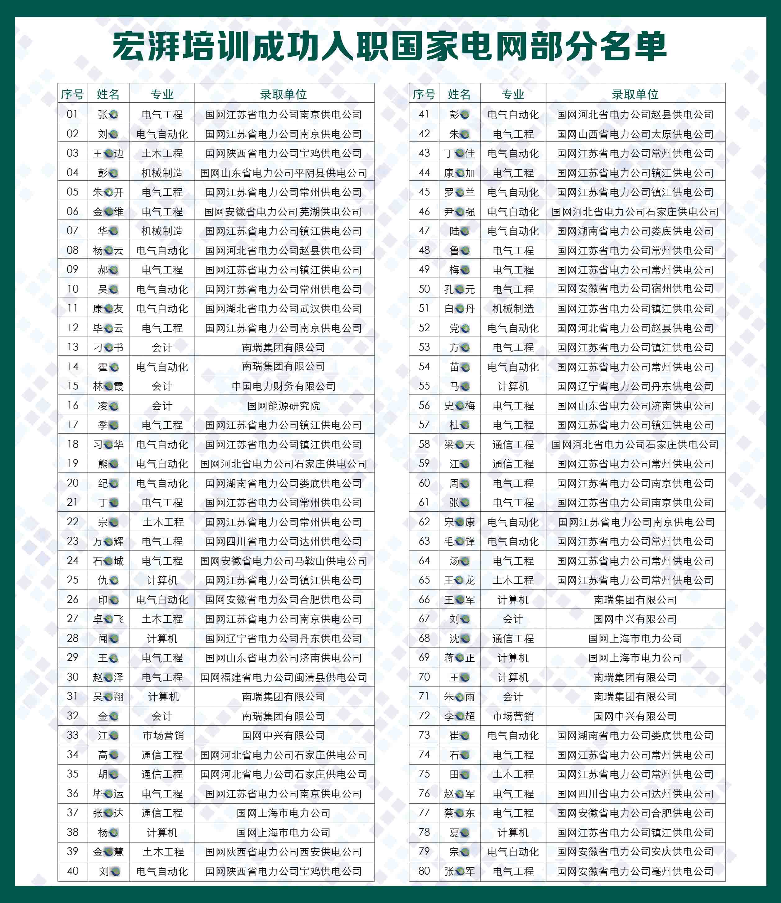 自創(chuàng)辦以來 ,幫助大量學生成功通過國家電網(wǎng)的考試,各個班次的通過率都是無人能及的!
