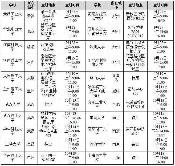 國家電網(wǎng)平高集團有限公司2020年校園招聘行程安排