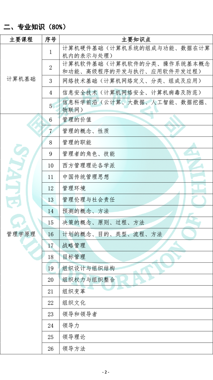 2021國家電網(wǎng)有限公司高校畢業(yè)生招聘考試大綱(管理類專業(yè))